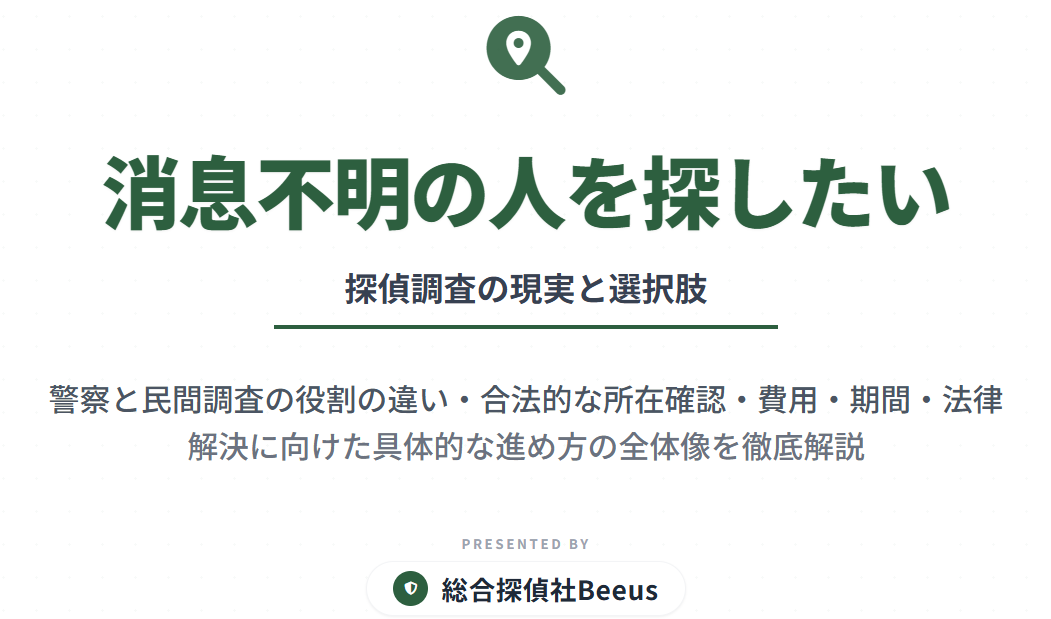 弊社では日本全国のお客様のご対応をとらせていただいております。 また地域でお値段が変わることもありませんので、是非ともお気軽にご連絡いただければと思います。まずは無料相談から!! (総合探偵社Beerus)